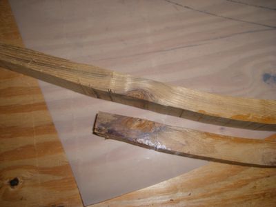 When I got to bow the glued scarf failed! Here I am trying another weak attempt to get it right, but it failed also. I ended fastening and epoxying it in place, came out close.