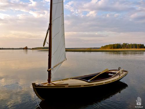 Ever since I moved to this area, twentysome years ago, I have been fascinated by the melonseed. My buddy, John, has one that is very light and fast. I was amazed how well it sailed, even in rough water. First thing I did was write to the Smithsonian for the Chapelle plans and imagine building my own version. It’s interesting that Chapelle says that it developed from the South Jersey Beach Skiff, only a little wider and flatter, with its tuckup keelson and the skeg added on. But it seems very modern and almost perfect for the way we use boats these days. Because it was developed for duckhunters and made to be dragged, paddled and portaged, the melonseed is easy to store at home, trailer, launch, and rig. I keep mine on a dolly at a local lake, and I use it often. Kind of like a wooden Laser. It takes only a matter of moments to get her ready for sailing. Melonseeds make a good choice for sailors who don’t go after ducks. They still want to explore the same waters and at least watch the ducks. At the same time, melonseeds are seaworthy with their fine entrance and sleek low hull; Adequate beam and form stability makes them stable and secure even in strong winds. I have cruised all over the area and have always felt secure. It may seem a paradox, but when the wind is gusty, I raise the daggerboard. That way, when a gust hits, the boat doesn’t heel over but skates to leeward, and I stay upright and dry. Continued on Mike Wick's page...