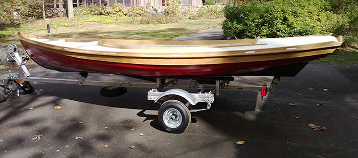 I've never had a red boat before, now I will. 3 coats of Interlux Brightside, one more to take the gloss down. Funky paint scheme as I'm only leaving the garboards and keel black (epoxy/graphite) and not painting a real bottom with waterline.